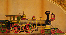 Paper artifacts often suffer staining and discoloration caused by a variety of environmental hazards. The 19th century commercial print shown on this page exhibits both staining and discoloration. In the photo at upper left, broad vertical stripes in the background indicate that it was housed for many years in a frame that had vertical wooden slats across the back. This allowed environmental differences to develop within the paper itself. Where there were gaps between the slats, the paper was adversely affected by a relatively high rate of air circulation, greater fluctuations in humidity and temperature, and a different level of acidity. Where gaps were not present, the paper was more protected and darkened less over time.