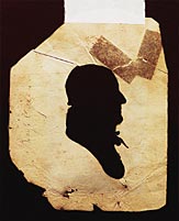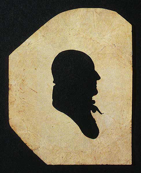 Paper artifacts frequently come in contact with poor-quality adhesives that cause significant and sometimes irreversible damage. One of the most common sources is pressure-sensitive tape, often used to mend tears or secure artworks to backing materials, as with the 18th century American cut silhouette shown here. Unfortunately, the adhesive eventually becomes chemically unstable and leaves unsightly yellow/brown discolorations on the paper. Tape adhesives have many different formulations; as they age, some remain soluble, while others become insoluble and irremovable.