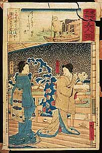 Weak or unprotected paper artifacts often develop tears and losses when not housed properly (i.e., not matted or foldered using proper methods and materials). Acidity and embrittlement often exacerbate the problems, as they did with the mid-19th century Japanese Ukiyoe Japanese print shown here. In addition to causing dimensional instability in the sheet, tears and losses also detract from the aesthetic value of an artifact.